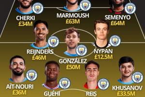 算上格伊,瓜迪奥拉在一年内已花费超4.15亿镑,打造全新首发11人