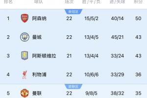 两场比赛战罢,利物浦与曼联的分差只有1分。