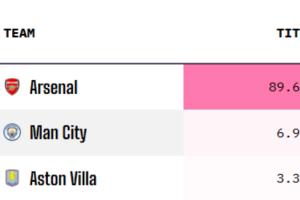体育资讯01月19日讯 英超第22轮争冠集团集体刹车,阿森纳战平,曼城和维拉则一同输球。Opta超级计算机最新的演算结果显示,阿森纳的夺冠概率已接近9成。