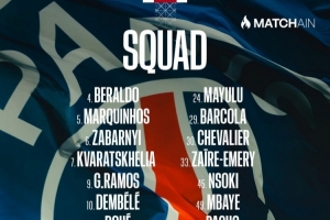 巴黎客战欧塞尔大名单:登贝莱领衔,法比安、努诺-门德斯缺席