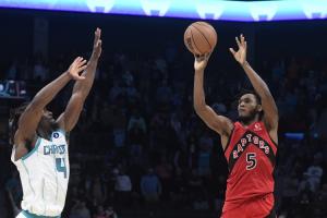 NBA常规赛,猛龙客场挑战黄蜂,末节最后20.1秒时巴雷特上篮打进,两队战成94平。