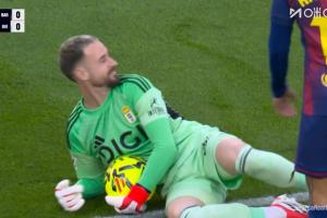 体育资讯01月25日讯 西甲第21轮,巴萨主场迎战皇家奥维耶多。 32分钟,埃斯坎德尔出击扑救,裁判判罚他在禁区外拿球,他不满判罚抗议染黄。回放看,埃斯坎德尔拿球时球还在禁区内。