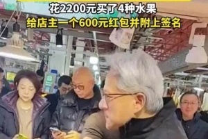 近日,英伟达CEO黄仁勋现身上海陆家嘴街道乳山路锦德菜市场。水果店老板刘先生称,黄仁勋很低调,很有亲和力,很愿意和大家合影。“我想帮忙洗一下水果,不让我洗,自己拿起来就吃。”刘先生说,黄仁勋在他的店里买了2200元的水果,给一个600元的红包,还附上签名。