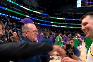 GIF-赛后东契奇与库班拥抱