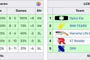 目前由于大龙组除了GEN和T1分别以4胜0负拿到8分外,NS和DNS都只有1分,而BRO则只有0分,总分10分;另一边远古龙组则是更加平均,总分为14分。