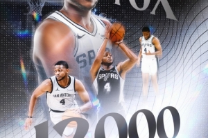 马刺球星福克斯的个人生涯总得分已经破了12000分大关,马刺官推发图文进行了庆祝。