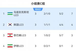 体育资讯01月13日讯 U23亚洲杯C组末轮今日结束,乌兹别克斯坦2-0战胜韩国,黎巴嫩1-0战胜伊朗。乌兹别克斯坦与韩国携手晋级,伊朗小组赛0胜垫底出局。