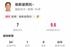 体育资讯1月15日讯 国米在本轮意甲1-0小胜莱切,埃斯波西托本场数据如下: